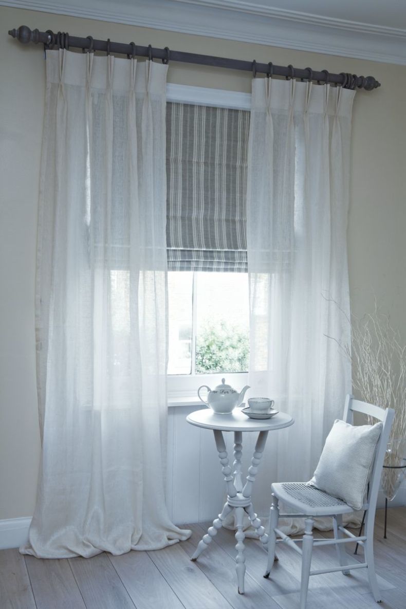 Выполнены шторы могут быть из различной ткани — лён, хлопок, сатин, шифон, шелк, органза (ключевой критерий выбора ткани — она должна держать форму). Считаются очень экологичными, ведь отсутствие складок и натуральные волокна притянут меньше пыли.