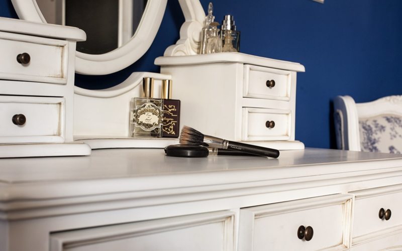 Для того чтобы добавить немного антуража в синюю спальню, дизайнеры рекомендуют сочетать насыщенный оттенок синего с белоснежно – белым. Мебель и текстиль должны быть идеально белого цвета.