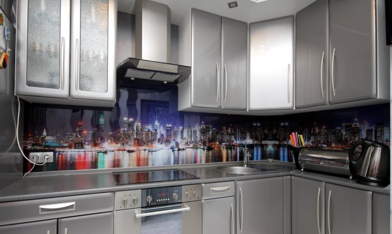 Скинали – это кухонные панели из стекла. Чаще всего их используют для оформления фартука. За стеклом размещается изображение. Таким образом, скинали несут две функции: декоративную и защитную. Они предохраняют часть стены в рабочей зоне от загрязнений, которые нередко возникают в процессе приготовления пищи.