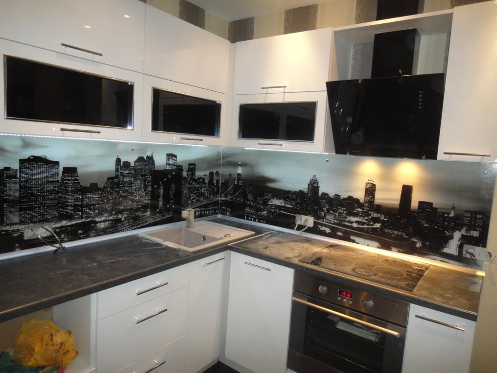 Как крепить скинали из стекла, если фартук имеет вытянутую форму? Он будет состоять из нескольких модулей. Главное в этом случае тщательно замаскировать стыки. С этой задачей смогут справиться только профессионалы.