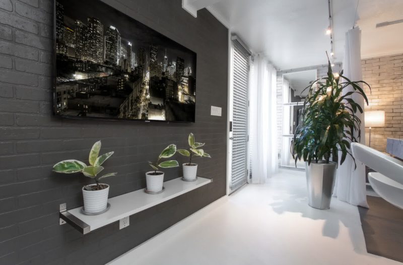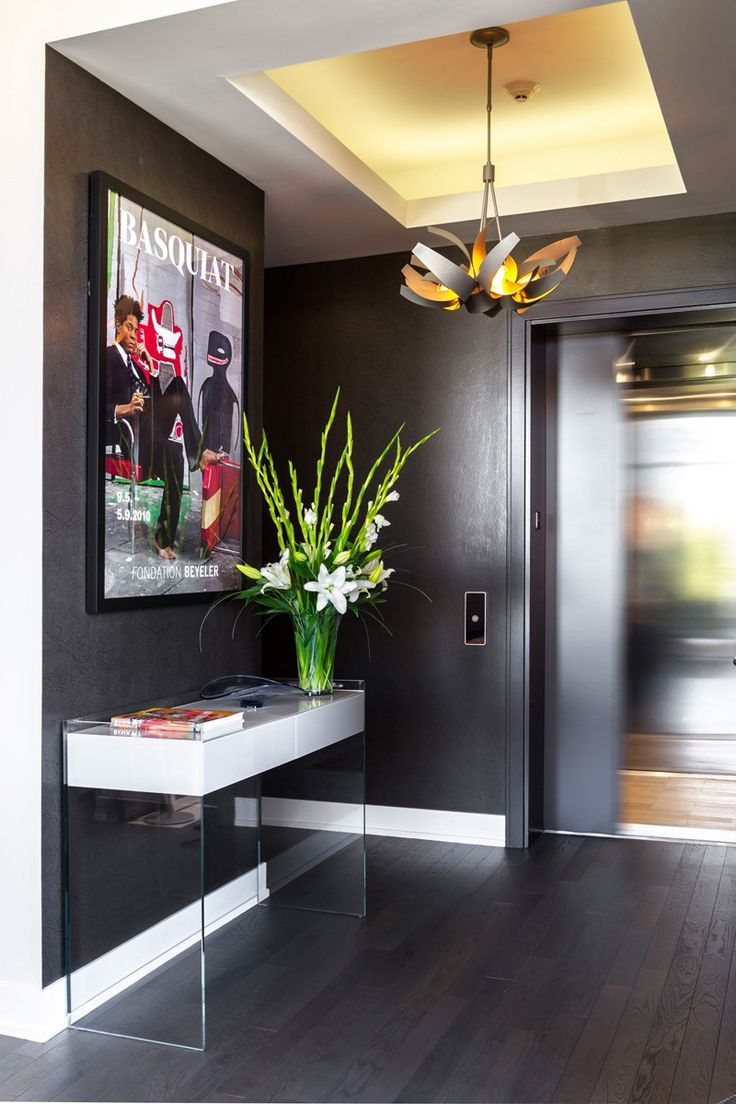 Телефон крепят на стены, зеркала, разные полочки. А если эти элементы сделать в дизайнерской атмосфере вашей прихожей в современном стиле, тогда это будет выглядеть эффектно. Например, цветовое решение, или яркие аксессуары на мебели – все это может играть на вашей стороне.
