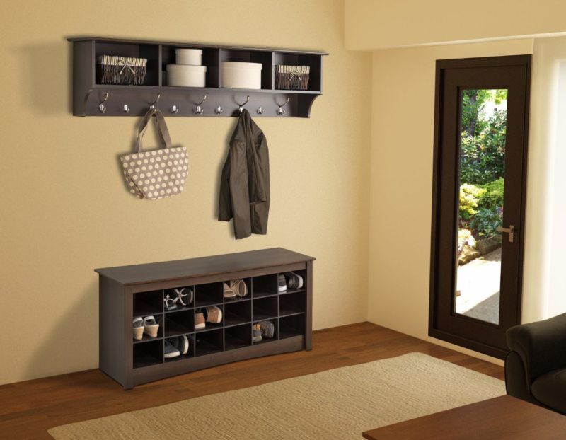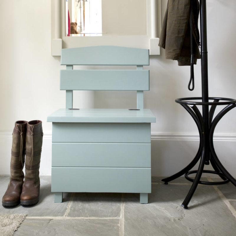 - стульчик, или практичнее всего многофункциональный пуф. Последний вариант наиболее практичный. Его используют как место для хранения средств за уходом обуви и непосредственно сиденья, где можно обуться;