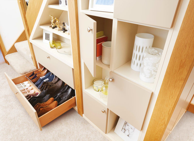 Просто вместо обычного, большого шкафа можно использовать более компактную мебель – конструктор. Ведь в нем должны помещаться уйма вещей.
