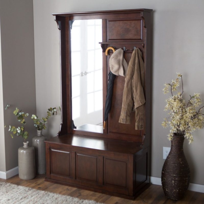 Современный дизайн прихожей предполагает использование пространства по максимуму. Стены не исключение. Для зрительного увеличения место, много вещей располагают именно таким образом.