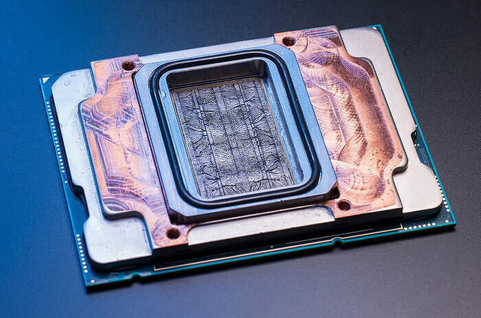 На обратной стороне кремниевого кристалла вытравлены крошечные канавки, позволяющие охлаждающей жидкости поступать непосредственно на кристалл и более эффективно отводить тепло. Размеры микроканалов сопоставимы с толщиной человеческого волоса. Они должны быть достаточно глубокие для циркуляции охлаждающей жидкости без засорения, но при этом не слишком глубокие, чтобы ослабить кремний и не допустить его разрушения.