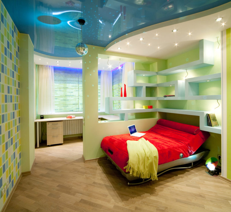 Дизайн спальни подростка может использовать эту тему по полной, и можно поиграть с цветами, чтобы получить необходимые эмоции и ощущения.