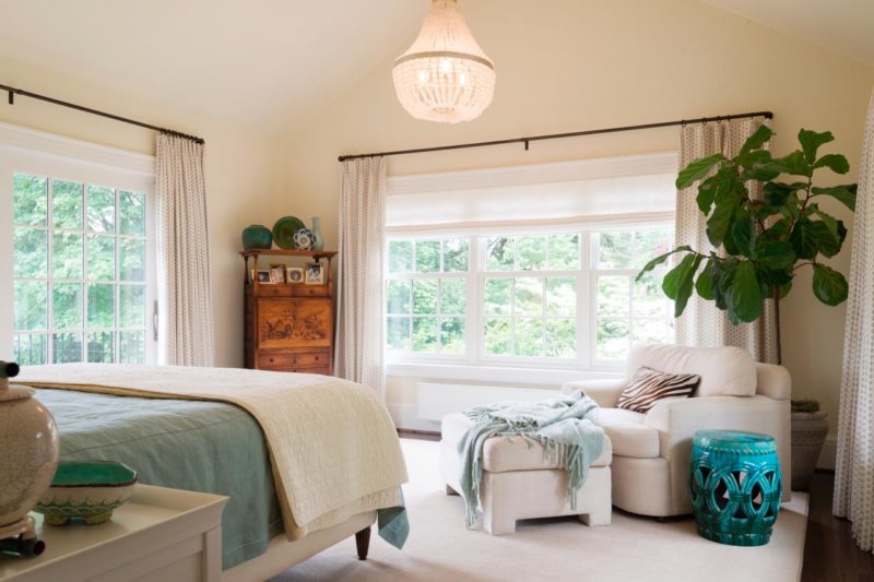 Неплохой вариант – создание арочного прохода, который, разграничивая спальню и гостиную, оставляет комнату достаточно светлой. В роли перегородки могут быть использованы занавески из бусин или ширмы, живые или искусственные растения.