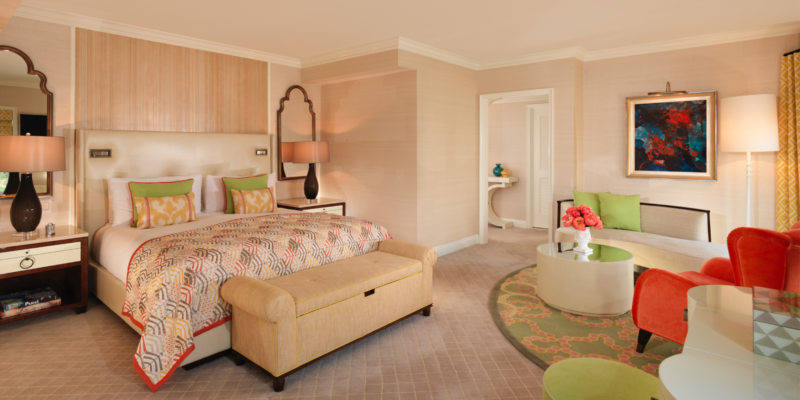 Для разграничения двух функциональных комнат можно воспользоваться цветовым акцентом. Так, например, можно оформить спальню и гостиную в контрастных цветах. Главное, чтобы оттенки сочетались друг с другом.