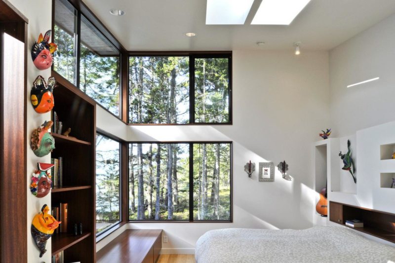 Специалисты не советуют ставить кровать у проема. Предпочтительнее использование темного места. Это обезопасит ваш покой и сон, не будет мешать утром спать, например.
