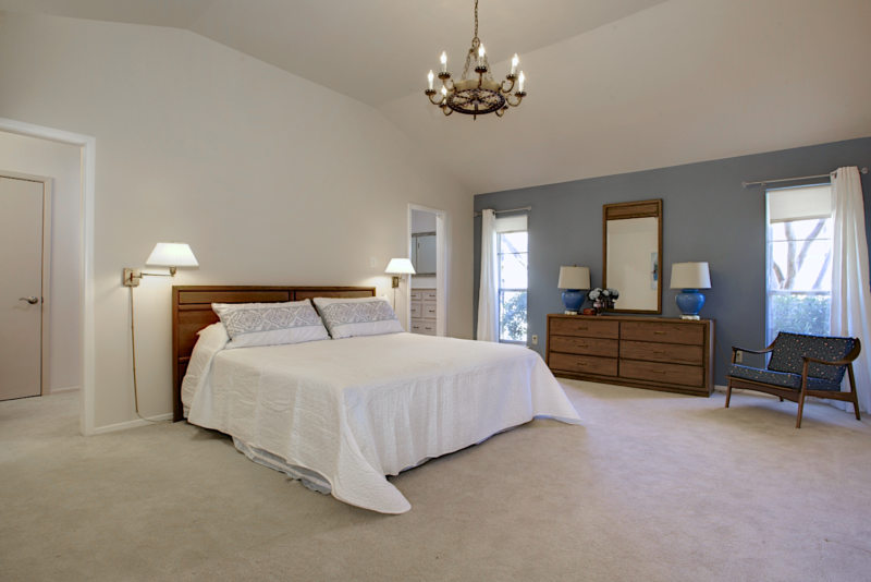 Здесь достаточно добавить несколько ярких пятен, чтобы преобразить обстановку. Сочный цвет напольного покрытия добавит в интерьер позитивного настроения.