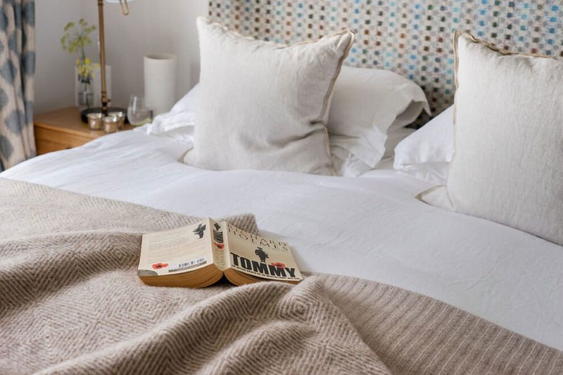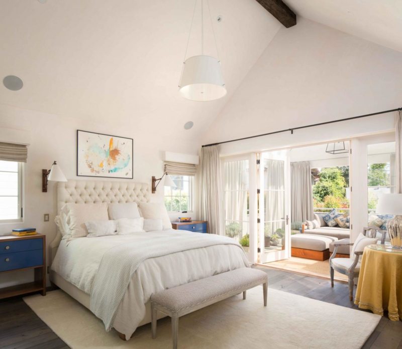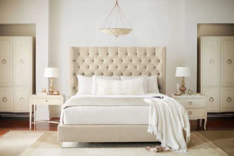 Спальня в светлых тонах помогает создать умиротворенный интерьер.
