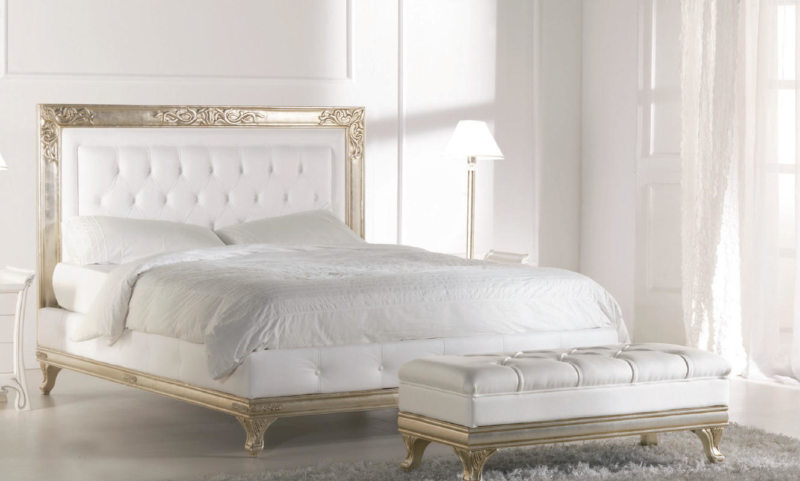 Элементы позолота на мебельной атрибутике, добавляют немного лоска в спальную зону. Такой интерьер напоминает царское ложе. Каждый предмет расположен на своем месте.