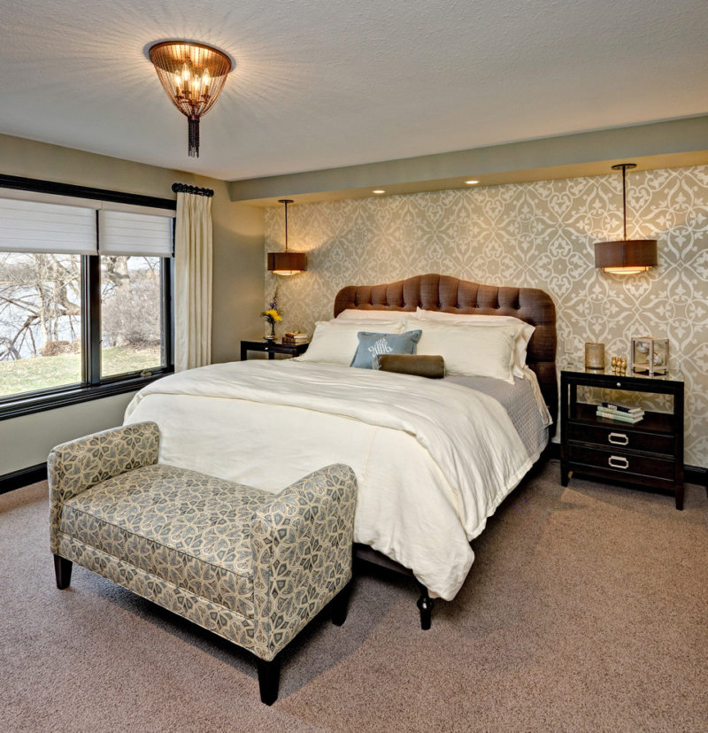 Дизайнеры рекомендуют выбирать светлые обои для спальни. Они могут содержать легкую фактуру, тем самым интерьер смотрится стильным и модным.