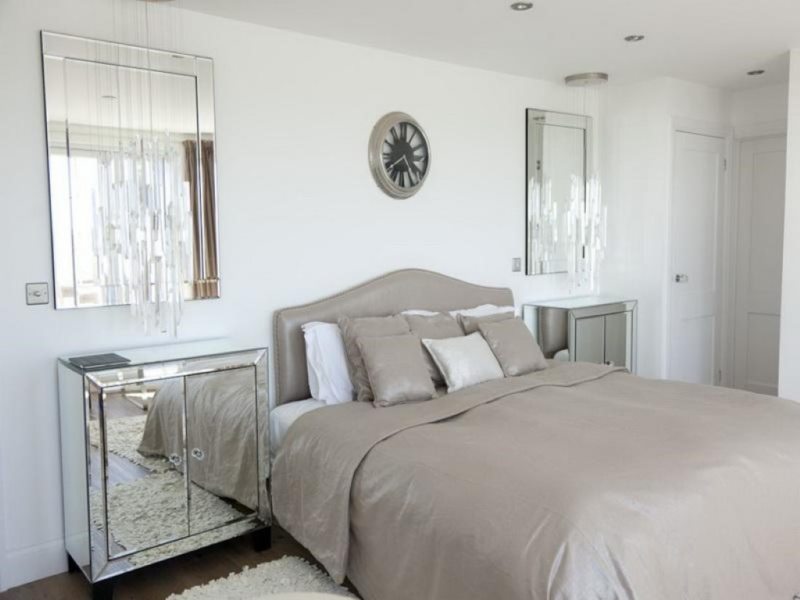 Красивые прикроватные лампы добавят мягкое освещение. Нежные композиции из искусственных цветов создают романтическую обстановку.
