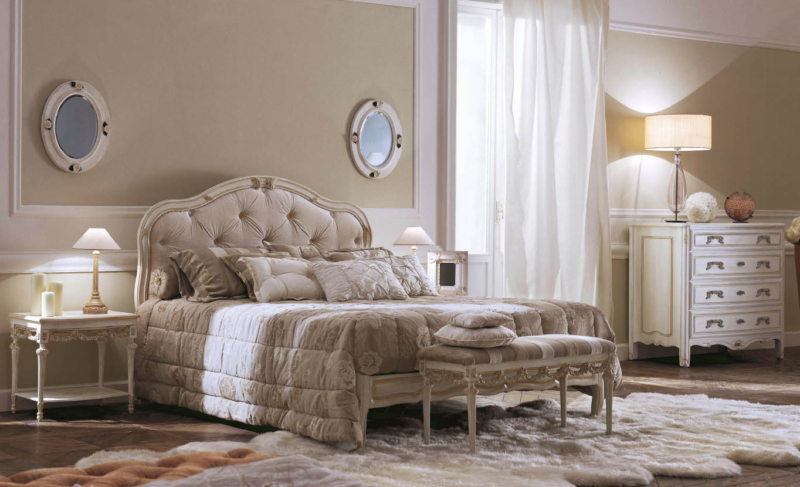 Классическая спальня в светлый тонах, отличается своей роскошью. Это стилистического направление никогда не выйдет из моды. Здесь мебель и текстиль выполнены в теплых бежевых красках.