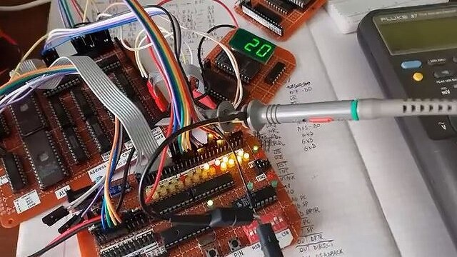 Инженер сразу же с головой окунулся в схемотехнику, копируя структуру классических процессоров 8-битной эпохи, в частности, таких, как Z80, которые способствовали революции персональных компьютеров. В итоге у него получилось нечто, хоть и не претендующее на элегантность из-за пучков проводов, равно как и на компактность, но при этом но работающее в соответствии с реальными наборами инструкций и даже выполняющее собственный ассемблерный код. Процессор даже реагирует на аппаратные прерывания, притом так же, как и современный процессор, который можно купить в магазине.