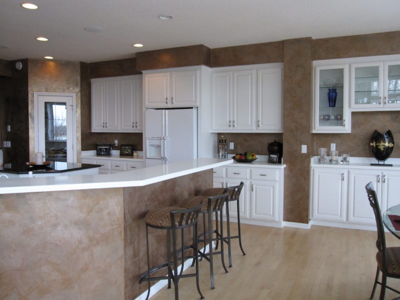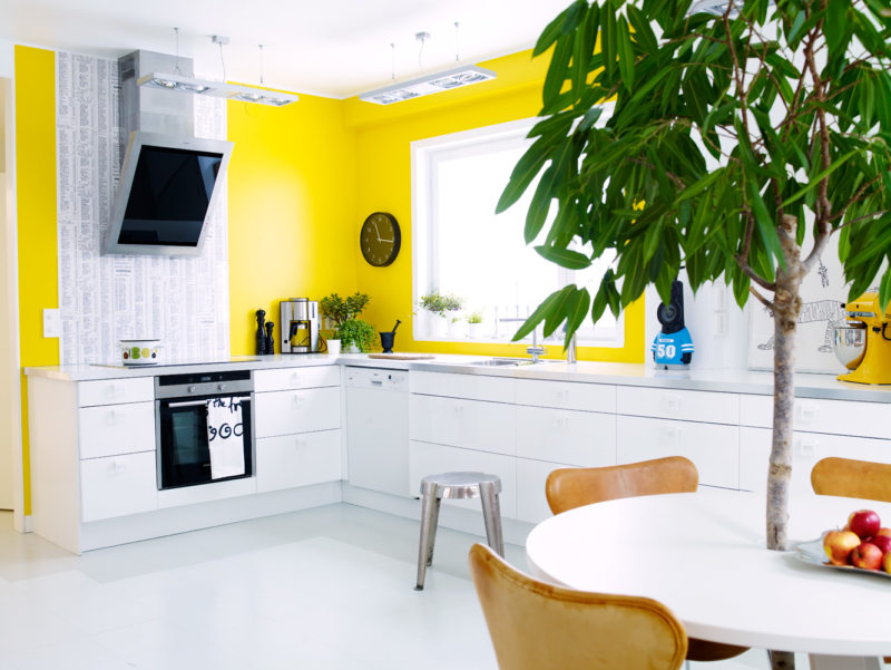 Это достаточно бюджетный вариант, который предоставляет безраздольный простор для фантазии. Можно развить в себе талант художника и, в соответствии с вашим вкусом и воображением, смешать два или более цветов, окрасив кухню именно так, как видите ее вы.