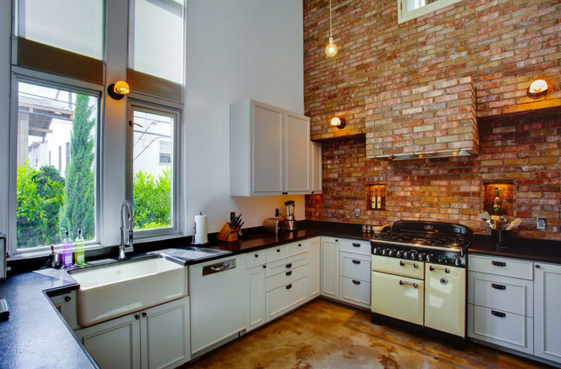Отделать таким камнем можно либо все стены, превратив свою кухню в средневековую столовую, либо отделать им какую-нибудь одну зону.