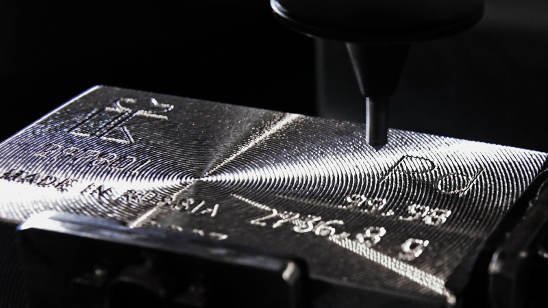 Маркировка слитка палладия высшей пробы 99,98% чистоты. Архивное фото