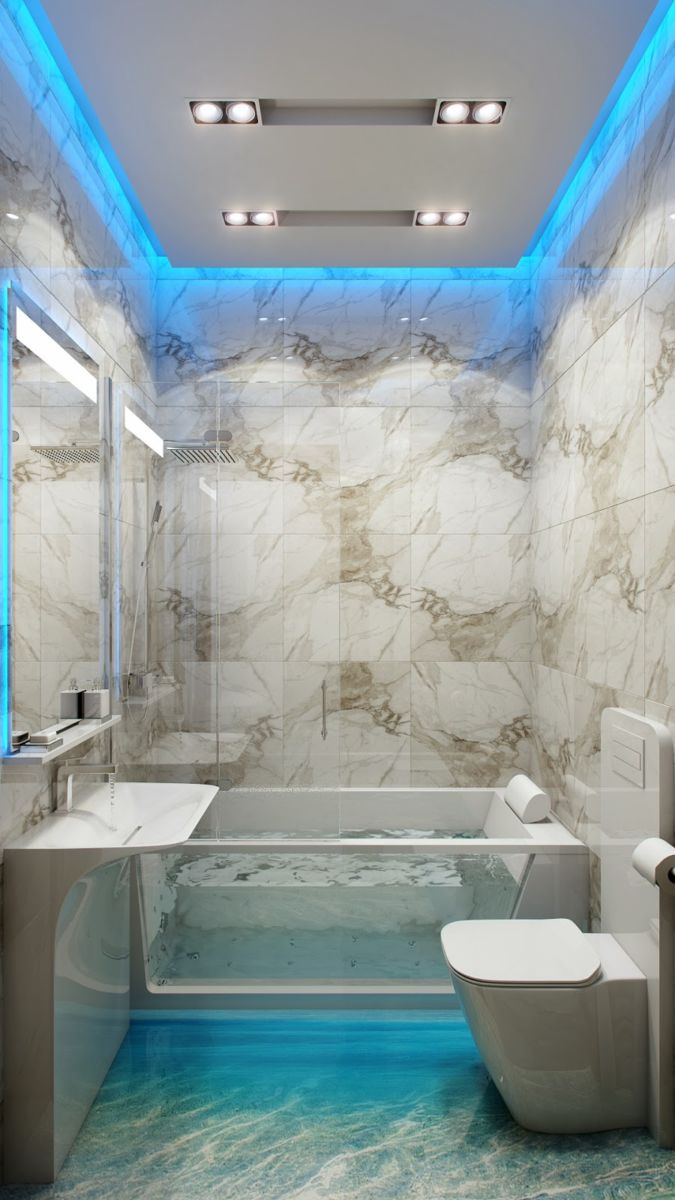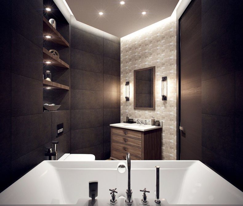 Ванная комната служит не только для гигиены, но для принятия теплого душа, чтобы снять негативные эмоции и стресс. Для этого необходима благоприятная расслабляющая атмосфера, поможет в этом освещение.