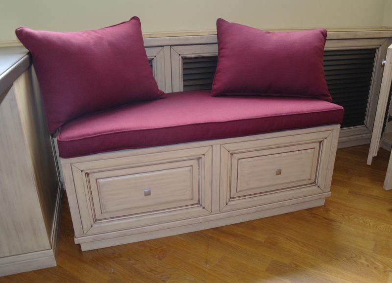Бывает и так, что банкетка имеет ниши, что выдвигаются. Такие тумбы обеспечивают мягкими сиденьями для максимального комфорта. Таким образом, вы экономите пространство, функционально его использовав.