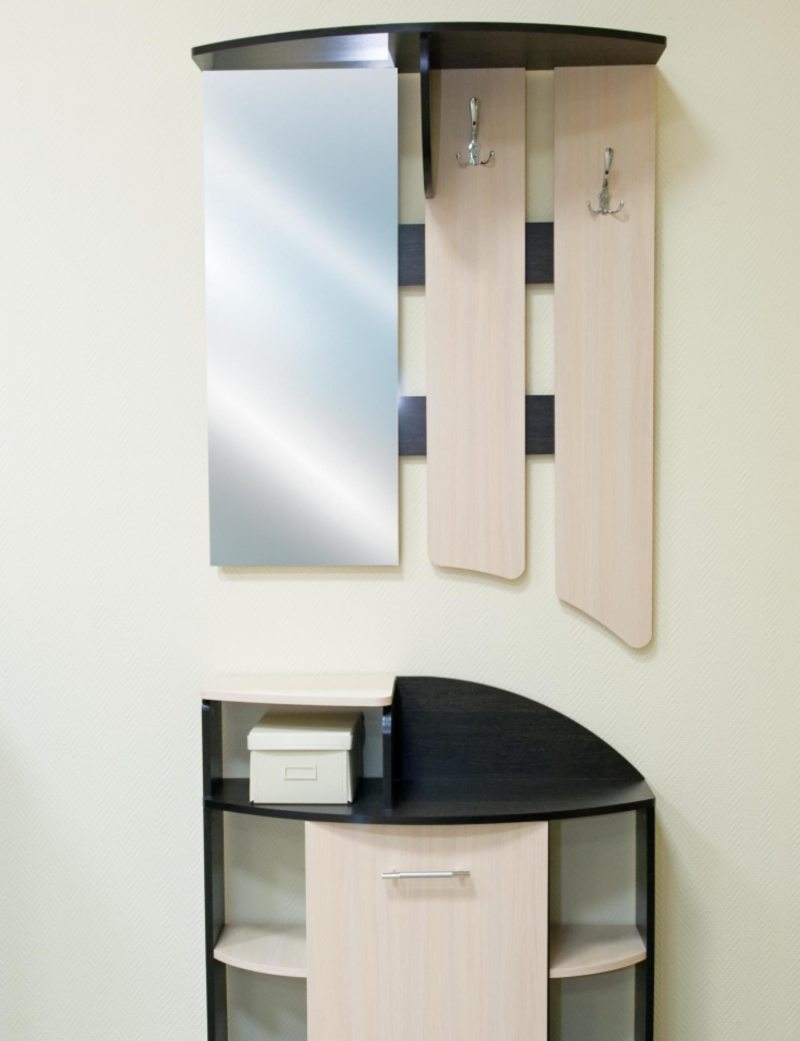 При стесненном пространстве подойдет угловая тумбочка в прихожую. Она обладает глубокими отделениями, это поможет спрятать всю вашу обувь. Достаточно функциональная, поможет рационально использовать пространство.
