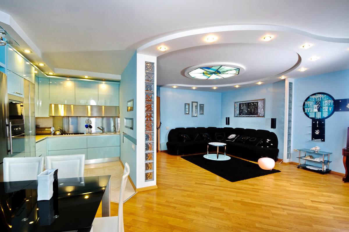 Традиционно гостиная комната — некое помещение, в котором принимаются гости. Но если квартира совсем малогабаритная, или же вообще однокомнатная, то в этой комнате совмещено все – спальная комната, гостиная, рабочее место.