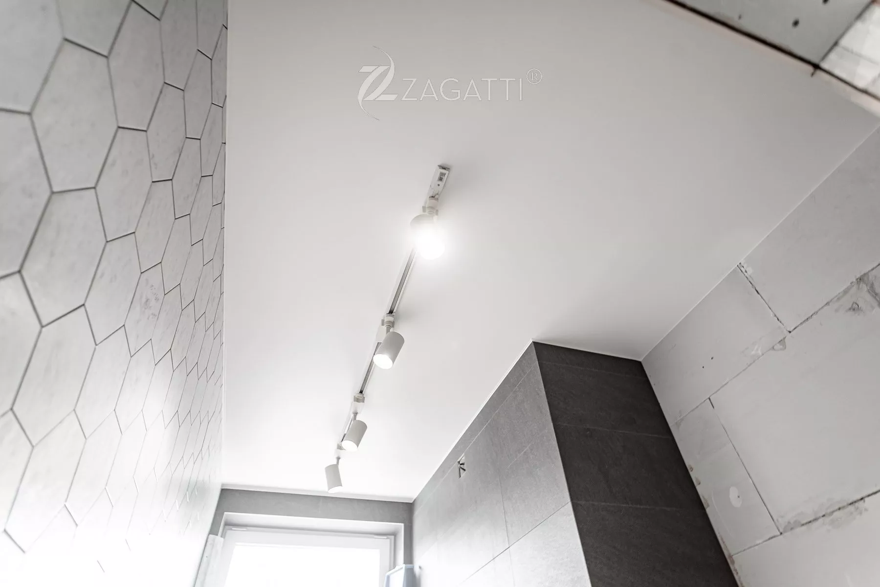 - В ванной комнате натяжные потолки могут страдать от повышенной влажности и конденсата. Хотя ПВХ-плёнка устойчива к воде, постоянное скопление влаги может привести к появлению плесени или грибка на стыках потолка и стен. Чтобы этого избежать, важно обеспечить хорошую вентиляцию в помещении. Если же плесень всё же появилась, её можно аккуратно удалить мягкой тканью, смоченной в растворе хлорки или перекиси водорода, после чего тщательно просушить потолок.