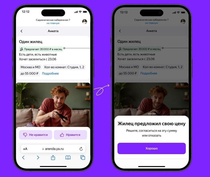 «Сегодня собственники гибко подходят к ценообразованию при сдаче квартир в долгосрочную аренду. По нашим данным, в городах-миллионниках четверть арендодателей снижают стоимость в объявлении о сдаче, чтобы быстрее найти арендатора. Среднее сокращение ставки в экспозиции составляет 9,4%. Еще в 5% объявлений арендодатели, наоборот, увеличивают стоимость в случае повышенного спроса — в среднем на 11,1%. Новые инструменты «Яндекс Аренды» — аукцион и торг — помогут собственникам в самые короткие сроки понять реальную рыночную стоимость недвижимости, максимизировать доход от сдачи в высокий сезон и избежать простоя. В свою очередь, арендаторы будут снимать квартиры более гибко: предлагать свою цену, если выбранный вариант дороже запланированного бюджета, или, наоборот, повышать ставку, чтобы опередить других претендентов и заехать в квартиру мечты», — сказала Мария Дорофеева, руководитель продукта сервиса «Яндекс Аренда».
