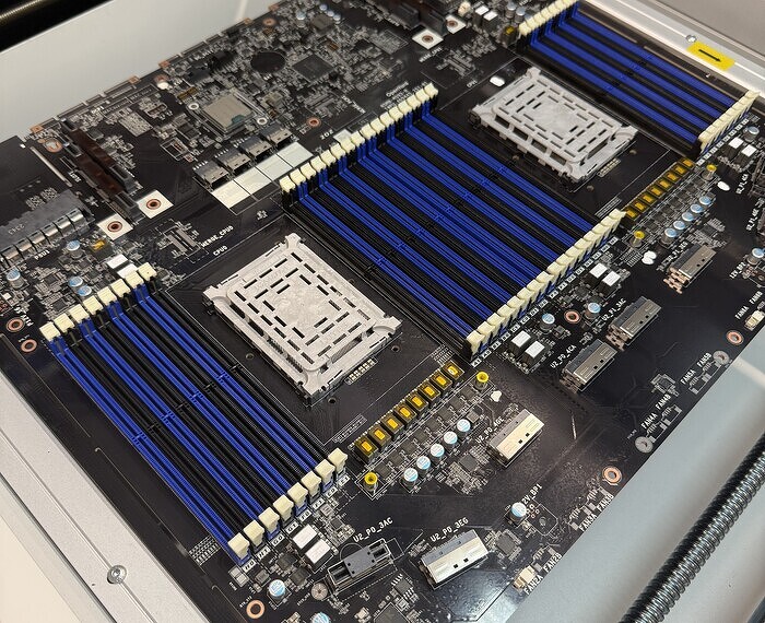 Указано, что в новой материнской плате установлен чипсет Intel C741, два сокета LGA 4677, которые поддерживают процессоры с максимальным значением TDP 350 Вт. В плате предусмотрено 32 слота для оперативной памяти DDR5 и разъем PCIe Gen5.